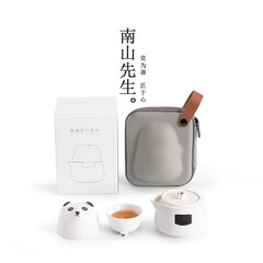 ¥118.00南山先生 快客杯陶瓷旅行茶具套装茶杯盖碗便携包 简约家用功夫茶具玻璃户外泡茶壶收纳包礼盒 一壶三杯(白色)