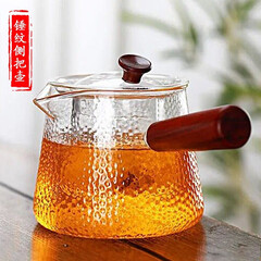 ¥68.00沽咚小茗 公道杯玻璃锤纹分茶器分茶杯加茶漏实木侧把煮茶壶茶具配件耐高温玻璃茶海功夫茶具 锤纹玻璃款500ml