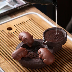 宇轩紫砂茶宠摆小猪喝水手工可爱迷你招财件茶桌茶玩手工精品可养 赐福猪三只款时来运转