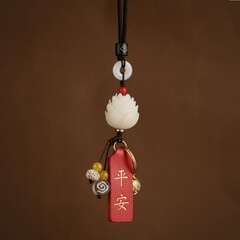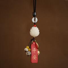 ¥238.00宝佩高档国风国潮黄杨木莲花汽车挂件荷花红色出入平安挂饰礼品