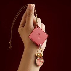 ¥69.00梵心 高档牛皮汽车挂件车内吊饰宝马男女款平安简约车载后视镜装饰品 平安福【红色】