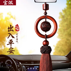 ¥98.00宝佩 高档汽车挂件桃木出入平安雕内饰车载车饰工艺品后流苏车挂礼品