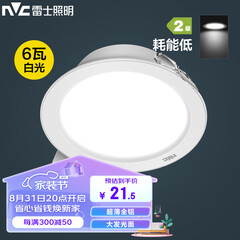 ¥26.90雷士照明(NVC) LED筒灯嵌入式天花灯 无主灯光源 全铝白边高显指款6瓦白光开孔9-10cm