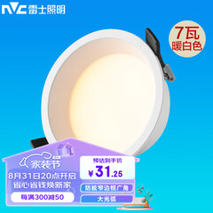 ¥38.80雷士照明(NVC) LED筒灯嵌入式天花灯 无主灯光源 高显指防眩光款 7瓦暖白光 开孔9.5-10cm