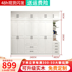 ¥2660.00默诺【现货闪发】 衣柜卧室现代简约平开门组装实木质大衣橱 【六门】2.4米主柜+顶柜+角柜 环保免漆板材