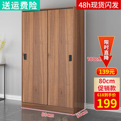 ¥1856.00衣柜推拉门组装简约现代经济型移门实木质2门卧室大衣橱 A款80长 180高 50深 浅胡桃
