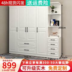 ¥786.00森普顿 衣柜卧室平开门衣柜木质组合现代简易简约板式家用柜子收纳衣橱 四门衣柜(160*50*180cm)