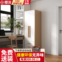 ¥1085.00樱浣衣柜家用卧室柜子小户型简易组装实木衣柜出租房用衣橱 【A款】原木白三抽两门60CM
