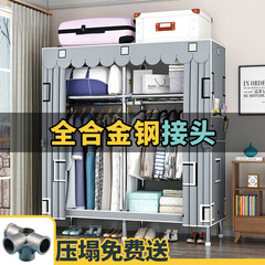 ¥149.00衣柜简易布衣柜合金接口布衣柜钢管加粗加固全钢架家用卧室组装收纳衣橱出租房用挂衣橱不是实木 憧憬-110厘米(需要其他颜色备注)