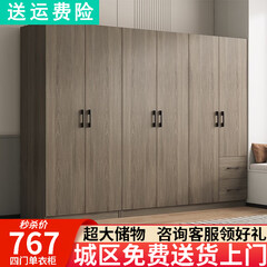¥1454.00桂木咖【现货闪发】衣柜卧室平开门衣柜木质组合现代简约板式家用柜子 240cm六门主柜 免漆板