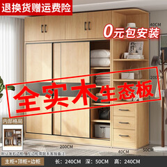 ¥2091.00美切斯【现货闪发】 原木衣柜推拉门实木衣柜简约大衣橱卧室大衣柜 2米三门主柜+顶柜+边柜 升级实木板