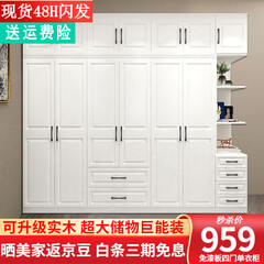¥2350.00超柏沐【现货闪发】 衣柜欧式衣柜实木质平开门大衣柜卧室大衣橱 【六门】240cm主柜+顶柜+右角柜 环保免漆板材