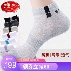 ¥79.80浪莎短袜男士袜子男袜夏季薄款网眼透气纯棉运动船袜夏天棉袜短筒 混色3双 均码:网眼男袜