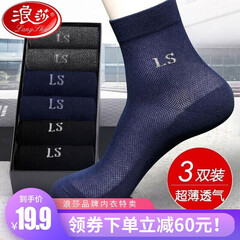 ¥79.90浪莎袜子男士纯棉夏季薄款男袜夏天吸汗透气网眼商务休闲中筒袜 混色3双装 均码