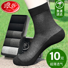 ¥29.80浪莎丝袜男夏季薄款透气中筒夏天袜丝光超薄吸汗男士袜子冰丝 含白色混色10双 均码289超薄防臭