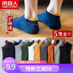 ¥69.90南极人5双装袜子男短袜春夏季透气吸汗网眼男士运动袜提耳短筒ins潮袜 10色后跟男船袜-随机5双装