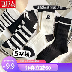 ¥69.90南极人5/10袜子女中筒袜四季透气舒适运动袜ins潮日系学院风堆堆袜 黑白R字女中筒-5双装