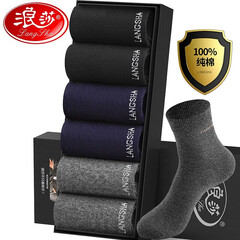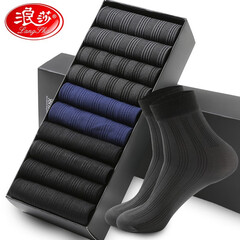 ¥28.00浪莎袜子男10双装中筒男士吸汗透气棉袜运动休闲商务男袜 黑4深灰4藏青2双 (均码)浪莎精品男袜礼盒装