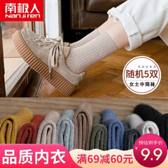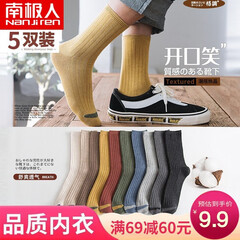 ¥69.90南极人袜子女中筒袜春秋季运动长袜学生袜子日系韩版休闲堆堆袜女袜 10色素色堆堆袜-随机5双