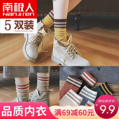 ¥69.90南极人5双装袜子女堆堆袜春秋季日系韩版中筒袜ins潮学生透气长筒袜 7色2杠堆堆袜-随机5双装