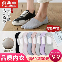 ¥69.90俞兆林5双装船袜女春秋季硅胶防滑薄款袜子女隐形袜透气浅口冰丝夏天短袜 小口网眼隐形袜-随机5双装