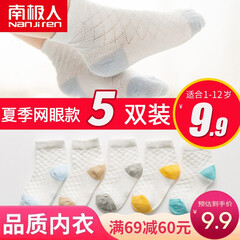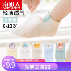 ¥69.90南极人儿童袜子春秋夏季薄款男童网眼宝宝卡通中筒袜婴儿女童透气短棉袜 立体卡丝童袜-随机5双装 XL码 8-10岁建议脚长19-20厘米