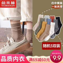 ¥69.90俞兆林5双装袜子女中筒袜秋冬季日系学院风糖果色潮流高帮中筒女堆堆袜 素色10色堆堆袜-随机5双装