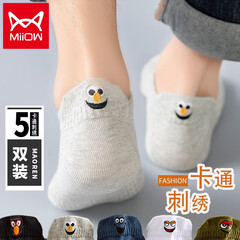 ¥79.90猫人MiiOW袜子男夏季船袜男士袜子后跟卡通刺绣短袜男舒适轻柔透气吸汗棉质隐形男袜5双装