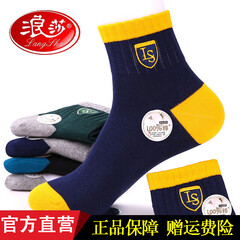 ¥52.00浪莎男士棉袜子全棉春季中筒运动透气纯棉袜休闲时尚短袜 100%棉8718混色6双 均码