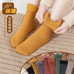 ¥39.90俞兆林5双装袜子女秋冬加厚保暖中筒雪地袜加绒毛圈袜直筒睡眠地板袜女 加厚雪地袜5双混装 均码