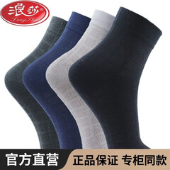 ¥29.90浪莎袜子男纯棉中筒袜运动网眼透气商务休闲男袜 【纯棉网眼】黑色2藏青2深灰2 均码(26-28CM)