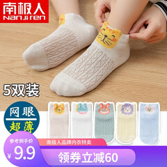 ¥69.90南极人儿童袜子薄款春秋夏季婴儿袜子男女童宝宝中大童小孩网眼中筒短袜 后跟分色网眼童袜-5双装 L码 5-10岁/建议脚长16-20cm