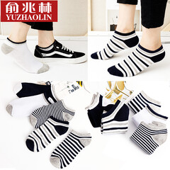 ¥19.00俞兆林5双袜子女夏季短袜浅口可爱低帮棉袜两杠条纹运动船袜 Y-女士5双装两杠短袜 均码