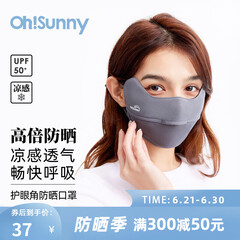 ¥44.00OhSunny防晒口罩夏女透气护眼角防紫外线防晒面罩男 SLN4M014T 素影灰 M