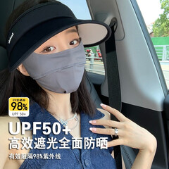 ¥39.90HOCR防晒口罩女防紫外线全脸冰丝透气夏季开车薄款帽子遮阳护眼角面罩 冰凉感气质灰