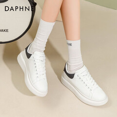 ¥209.90达芙妮(DAPHNE)厚底小白鞋女春季女鞋子女新款网面透气老爹鞋女 白黑色 37