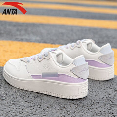 ¥159.00安踏板鞋女鞋秋季厚底白色运动鞋时尚板鞋品牌休闲鞋小白鞋女 -象牙白/迷雾紫 39
