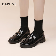 ¥309.90达芙妮(DAPHNE)小皮鞋女2023春夏季薄款英伦风乐福鞋学生玛丽珍鞋子女 亮面黑 38