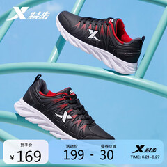 ¥199.00特步男鞋跑步鞋轻便减震运动鞋男耐磨舒适休闲慢跑鞋983419119503(881419119809) 黑红-9809 42码