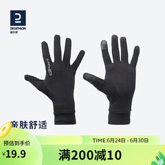 ¥19.90迪卡侬手套秋男女跑步健身骑行加绒保暖运动全指五指RUNC黑色L 2310975