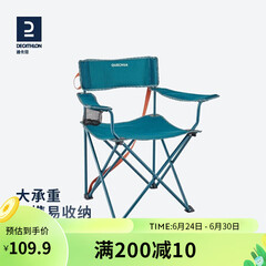 ¥109.90迪卡侬户外折叠椅子便携露营钓鱼椅随身靠背椅马扎凳子QUNC离地41cm蓝绿色扶手椅(承重110公斤) 2918997