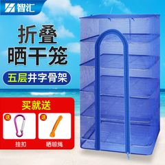 ¥48.00智汇 晒鱼网 晒鱼神器 晒干笼 晾晒网 晒菜网罩神器 晒鱼干的网 晒网防苍蝇 晾晒鱼干神器 鱼网笼 (井字骨架5层)50cm*50cm*103cm 晒渔网