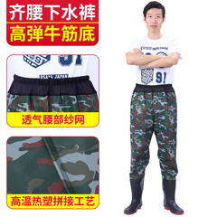 ¥59.00渔达人加厚齐腰下水裤半身捕鱼雨裤男连体雨鞋防水衣服水叉裤耐磨 齐腰 超轻墨绿花纹65丝 鞋号 40