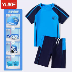 ¥99.00羽克(Yuke)儿童泳衣男童短袖新款中大童宝宝分体式防晒速干游泳装备 深蓝套装+泳镜+泳帽+泳包+手臂圈 3XL(建议身高130—140cm)