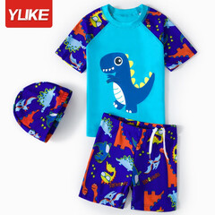 ¥69.90羽克(Yuke)儿童泳衣中大童 男童分体恐龙遮阳速干游泳衣宝宝小孩泳装 2107蓝色恐龙 3XL建议身高125-135cm