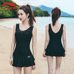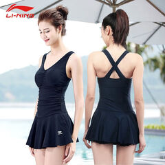 ¥179.00李宁(LI-NING)泳衣女士修身遮肚显瘦连体裙式温泉度假保守大码泳装020 黑色XL