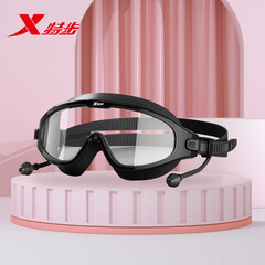 ¥69.90特步(XTEP)成人游泳眼镜男女高清防雾防水大框连体耳塞专业游泳装备 透明黑