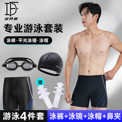 ¥55.00朵梵林(duofanlin)泳裤男三件套专业防尴尬游泳裤泳帽泳衣近视泳镜游泳全套装备 泳裤+泳帽+平光泳镜/含耳塞 XL【身高170-180体重63-80kg】
