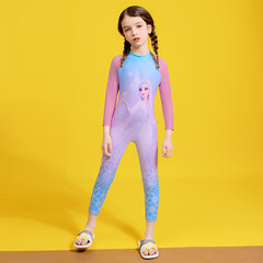 ¥129.00迪士尼DISNEY 儿童泳衣女童冰雪奇缘长袖长裤连体冲浪服SF220247紫色130