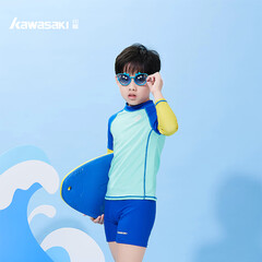 ¥116.00川崎(KAWASAKI)儿童泳衣男童分体泳裤套装男孩宝宝大中小童长袖速干训练游泳装备SSC-V4003 湖蓝 140